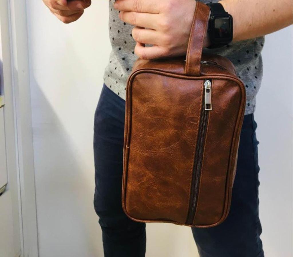 Ya sea para llevar en tu maleta, mochila o simplemente en la mano, este neceser combina practicidad y elegancia, pensado para hombres que valoran el orden y el estilo en cada detalle.